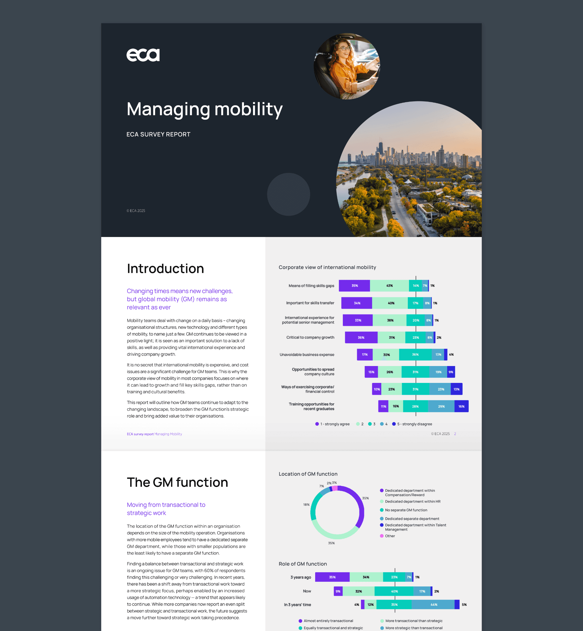 Managing Mobility is a flagship research project combining a formal white paper with a digital-first survey report. Drawing on insights from over 250 global organisations, it explores the changing role of mobility and the wider industry. The survey paper was shortlisted for Best Survey or Research Study of the Year at the FEM EMEA EMMAs, 2025.